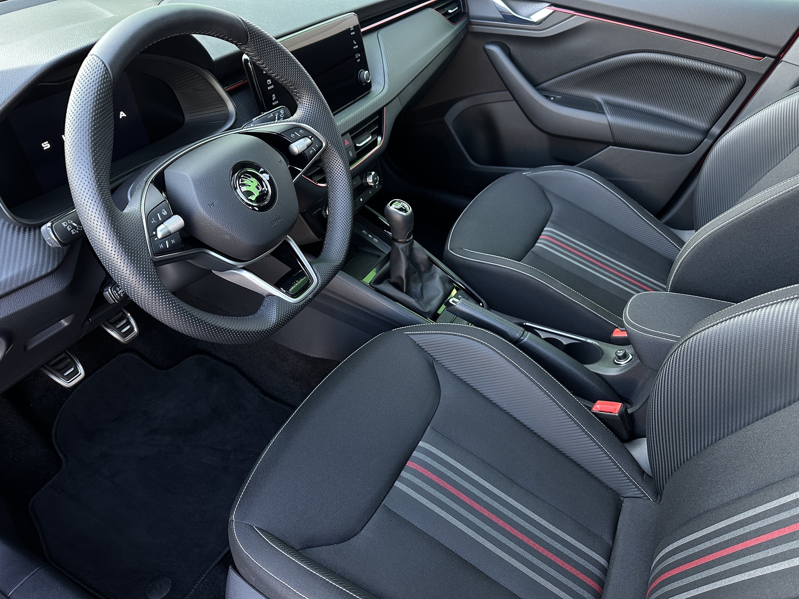 24/10741 Škoda Scala Monte Carlo 1.5TSi 110kW/150PS, 6st. Manuální převodovka, Tovární záruka do 08/2029 nebo 100.000km, Výbava vozu: Asistovaná jízda 1.5 PLUS - (Adaptivní tempomat - ACC, Adaptivní vedení v jízdním pruhu - Lane Assist+, Hlídání mrtvého úhlu - Side Assist), Ocelové rezervní kolo, Matrix-LED přední světlomety, Panoramatická střecha, Interiér – sportovní Monte Carlo s černou stropnicí, Černě lakované doplňky karoserie, Kola z lehkých slitin ALU Škoda "KAJAM" 6,5Jx17" Černá/Leštěná, LED zadní světla s animovanými směrovkami, Vyhřívaný sportovní multifunkční kožený volant – pro DSG s pádly pod volantem, Sportovní kryty pedálů, Dekorativní prahové lišty, KESSY – bezklíčové odemykání a startování, Volba jízdních režimů, Zadní parkovací kamera , Parkovací senzory vpředu a vzadu – PDC, Mlhové světlomety, Elektricky sklopná vnější zrcátka s automatickým stmíváním, 2x USB-C vzadu, Dešťový senzor, Světelný senzor, Vnitřní zpětné zrcátko s automatickým stmíváním, Bezdrátové nabíjení pro Smartphone, Zadní loketní opěrka, Loketní opěrka s Jumbo Boxem vpředu, Dvouzónová automatická klimatizace Climatronic, Vyhřívaná přední sedadla, Bederní opěrky na předních sedadlech, Výškově nastavitelná sedadla řidiče a spolujezdce, Kožená hlavice řadicí páky a madlo ruční brzdy, Vyhřívané trysky ostřikovačů, Ukazatel hladiny kapaliny do ostřikovačů, Elektrické ovládání oken vpředu i vzadu, 12V zásuvka vpředu a vzadu, 2x USB-C, 8 reproduktorů, Infotainment Media 8" – Bluetooth, 4 reproduktory, DAB, Bezdrátový SmartLink, Front Assist – varování a brzdění při hrozící kolizi s vozidly, chodci a cyklisty, Rozpoznávání dopravních značek, Upozornění na únavu řidiče, Asistent rozjezdu do kopce, Virtual Cockpit , 6x airbag, 3x Isofix a Top Tether, Deaktivace airbagu spolujezdce, Nouzový systém SOS eCall+, Potah sedadel – látka, Sunset – zatmavená zadní okna, Velmi dobrý stav, Servisní kniha + dokumentace Škoda Auto, Možnost odpočtu DPH 21%, Skladem - ihned k odběru.