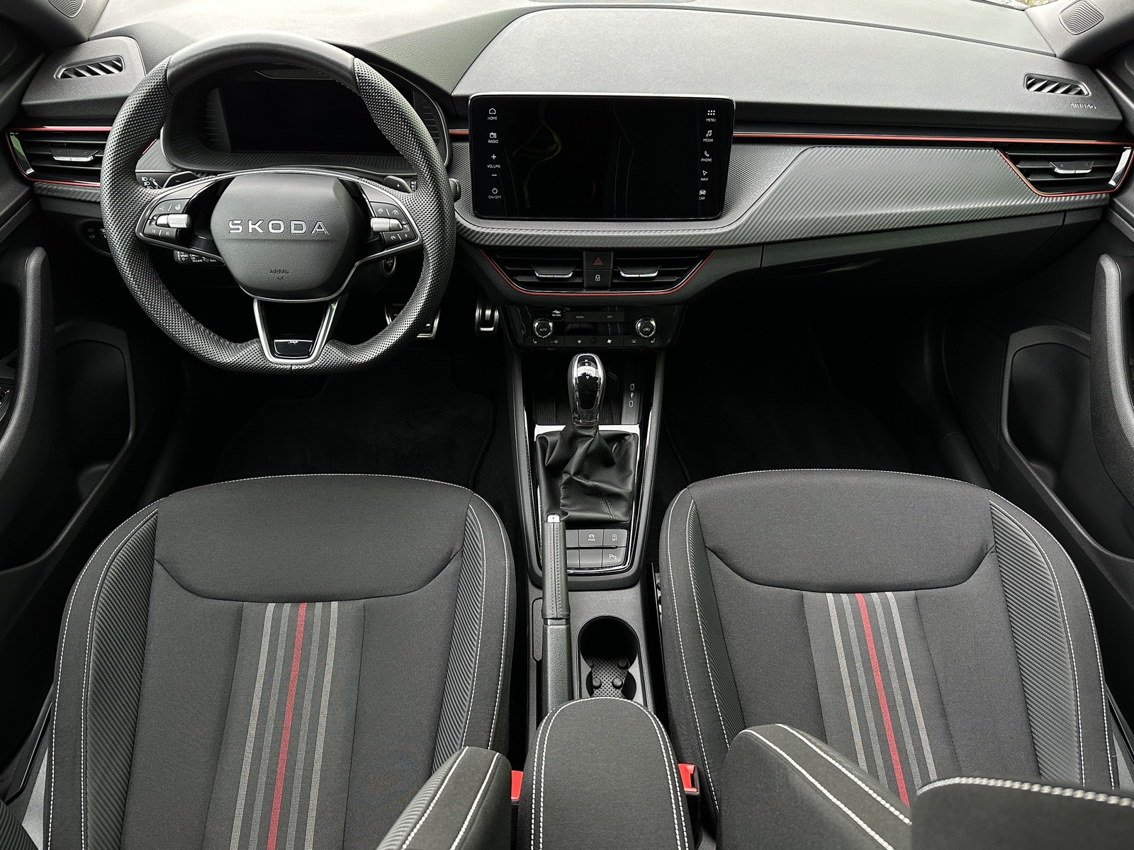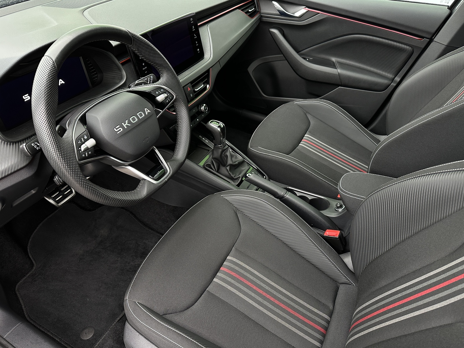 3/10799 Škoda Scala Monte Carlo 1.5TSi 110kW/150PS, 7st. Automatická převodovka DSG, Tovární záruka Škoda Auto 5let/100.000km, Výbava vozu: Asistovaná jízda 1.5 PLUS - (Adaptivní tempomat - ACC, Adaptivní vedení v jízdním pruhu - Lane Assist+, Hlídání mrtvého úhlu - Side Assist), Paket NAVI - (Infotainment Amundsen s Navigací, Webradio, Virtuální Cockpit, Digitální asistentka Laura), Tažné zařízení sklopné - el. odjistitelné, Ocelové rezervní kolo, Kola z lehkých slitin ALU Škoda "URSA" 7Jx18" Černá/Leštěná, Vyhřívané čelní sklo, Matrix-LED přední světlomety, Panoramatická střecha, Interiér – sportovní Monte Carlo s černou stropnicí, Černě lakované doplňky karoserie, LED zadní světla s animovanými směrovkami, Vyhřívaný sportovní multifunkční kožený volant – pro DSG s pádly pod volantem, Sportovní kryty pedálů, Dekorativní prahové lišty, KESSY – bezklíčové odemykání a startování, Volba jízdních režimů, Zadní parkovací kamera, Parkovací senzory vpředu a vzadu – PDC, Mlhové světlomety, Elektricky sklopná vnější zrcátka s automatickým stmíváním, 2x USB-C vzadu, Dešťový senzor, Světelný senzor, Vnitřní zpětné zrcátko s automatickým stmíváním, Bezdrátové nabíjení pro Smartphone, Zadní loketní opěrka, Loketní opěrka s Jumbo Boxem vpředu, Dvouzónová automatická klimatizace Climatronic, Vyhřívaná přední sedadla, Bederní opěrky na předních sedadlech, Výškově nastavitelná sedadla řidiče a spolujezdce, Kožená hlavice řadicí páky a madlo ruční brzdy, Vyhřívané trysky ostřikovačů, Elektrické ovládání oken vpředu i vzadu, 12V zásuvka vpředu a vzadu, 2x USB-C, 8 reproduktorů, Bluetooth, 4 reproduktory, DAB, Bezdrátový Smartlink - zrcadlení aplikací z telefonu na Infotainment vozidla, Front Assist – varování a brzdění při hrozící kolizi s vozidly, chodci a cyklisty, Rozpoznávání dopravních značek, Upozornění na únavu řidiče, Asistent rozjezdu do kopce, Virtualní Cockpit , 6x airbag, 3x Isofix a Top Tether, Deaktivace airbagu spolujezdce, Nouzový volání SOS eCall+, Potah sedadel – látka, Sunset – zatmavená zadní okna, Servisní kniha + dokumentace Škoda Auto, Možnost odpočtu DPH 21%, Skladem - ihned k odběru.