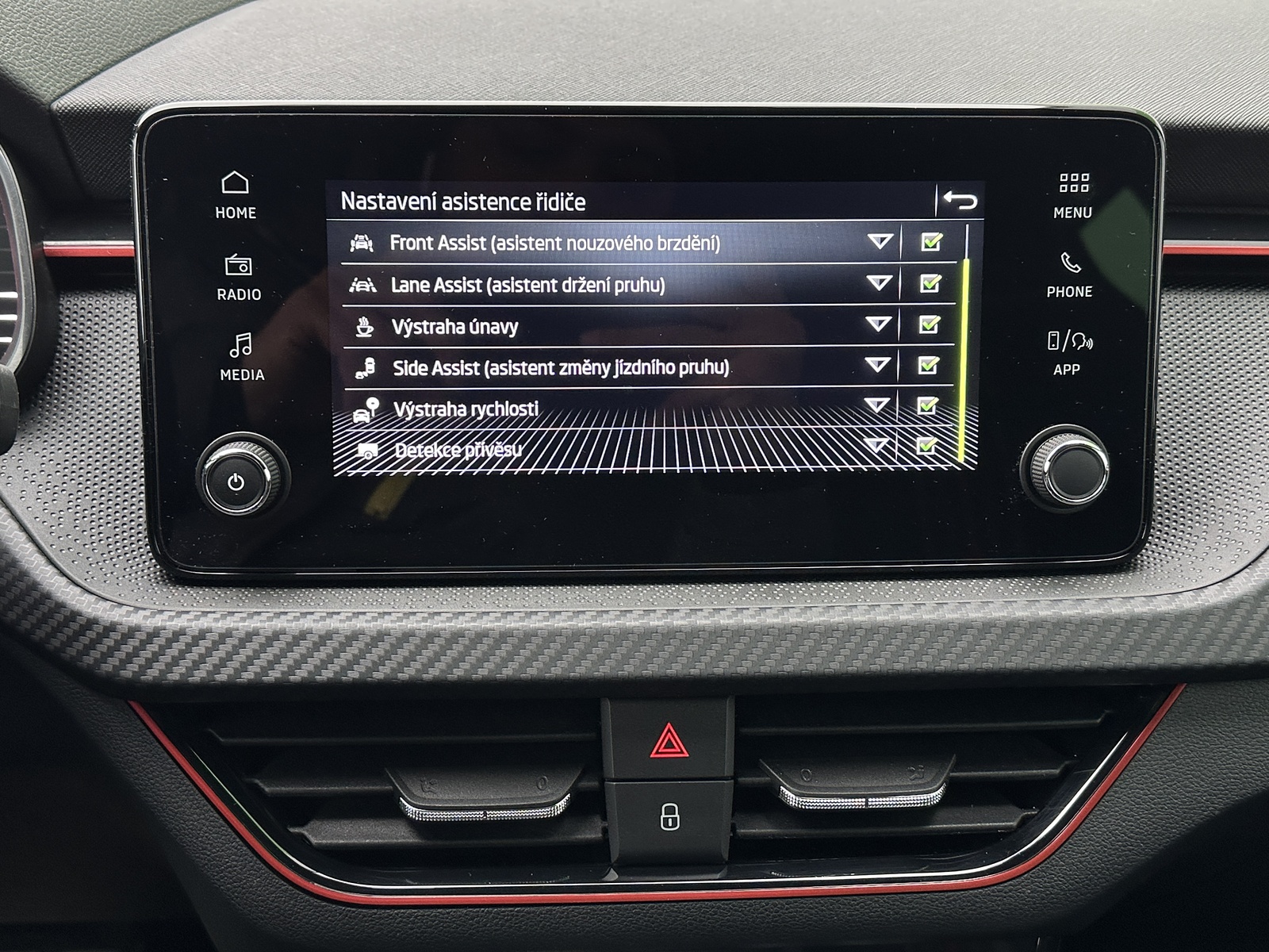 ABS, adaptivní tempomat, airbag, alarm, Android Auto, Apple Car Play, Asistent pro odbočování, Asistent pro vedení vozu v jízdních pruzích, asistent rozjezdu do kopce, Asistent udržování odstupu, Asistent změny jízdního pruhu, automatická klimatizace, automatická převodovka, automatické svícení, autorádio, Bezdrátová nabíječka mobilních telefonů (Qi), bezklíčkové ovládání, bezpečnostní pískování oken, bluetooth, centrální zamykání, dálkové centrální zamykání, deaktivace airbagu spolujezdce, dělená zadní sedadla, Denní svícení, Digitální příjem rádia (DAB), Digitální přístrojová deska, Dotykové ovládání palubního počítače, dvouzónová klimatizace, Elektrické dovírání zavazadlového prostoru, Elektrické tažné zařízení, Elektrochromatické vnitřní zpětné zrcátko, el. ovládání oken, el. ovládání zrcátek, el. ovládaný kufr, el. sklopná zrcátka, el. startér, ESP, hlídání mrtvého úhlu, imobilizér, isofix, katalyzátor, LED adaptivní světlomety, LED denní svícení, LED matrixové světlomety, LED světlomety plnohodnotné, litá kola, Malý kožený paket, mlhovky, Mobilní připojení, multifunkční volant, Multimediální systém bez navigace, nastavitelná sedadla, nastavitelný volant, natáčecí světlomety, nouzové brždění, originál autorádio, Originální autorádio, Pádla řazení na volantu, palubní počítač, panoramatická střecha, parkovací asistent, parkovací kamera, parkovací senzory, Parkovací senzory přední, Parkovací senzory zadní, podélný posuv sedadel, posilovač řízení, protiprokluzový systém kol (ASR), Přístrojová deska s barevným displejem, rádio, rezervní kolo, Rozpoznávání dopravních značek, senzor stěračů, senzor tlaku v pneumatikách, sledování jízdního pruhu, sledování únavy řidiče, sportovní sedadla, Start/Stop systém, Systém nouzového zastavení, tažné zařízení, tempomat, tónovaná skla, USB, venkovní teploměr, Volba jízdního režimu, vyhřívaná sedadla, vyhřívaná zrcátka, vyhřívané čelní sklo, Vyhřívané trysky ostřikovačů skla, vyhřívaný volant, výškově nastavitelná sedadla, výškově nastavitelné sedadlo řidiče, Zadní loketní opěrka, zadní stěrač, záruka, Zatmavená zadní skla, závěsné zařízení v TP, 6 x airbag