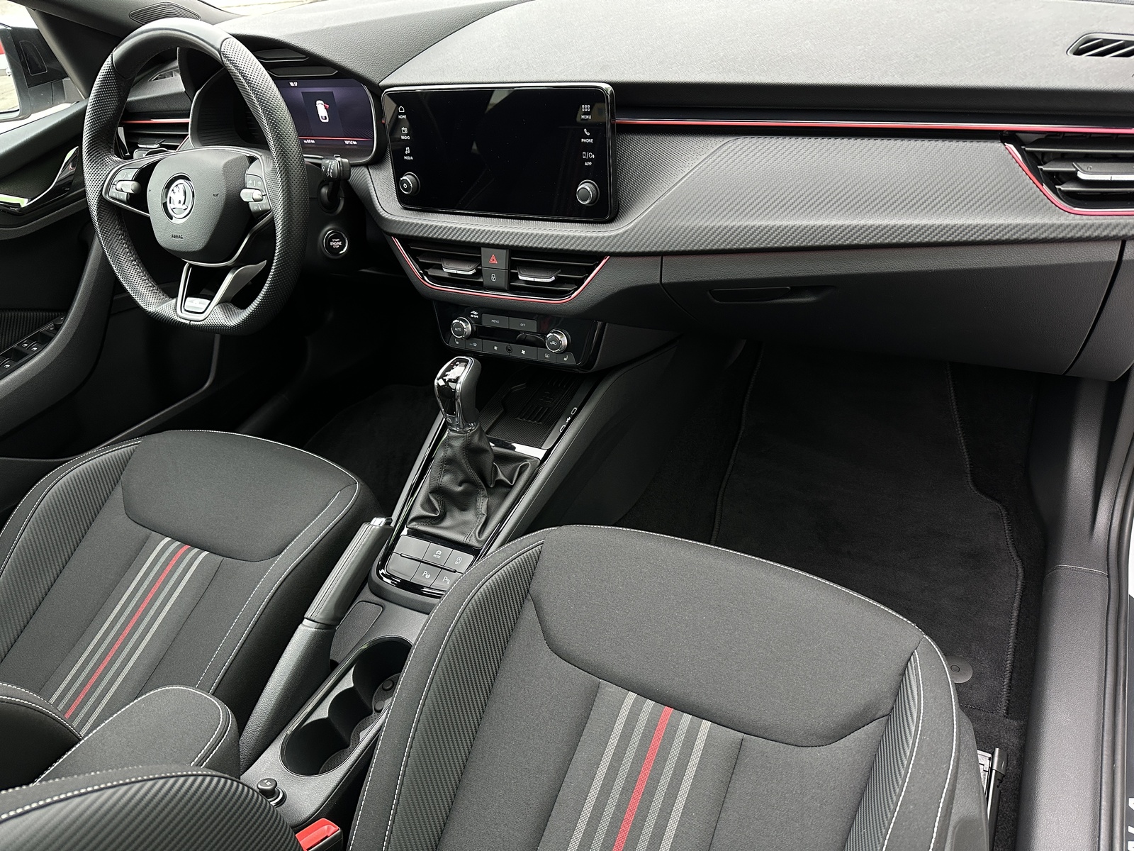 88/11008 Škoda Scala Monte Carlo 1.5TSi 110kW/150PS, 7st. Automatická převodovka DSG, Tovární záruka Škoda Auto 5 let/100.000km, Výbava vozu: Paket City PREMIUM - (Zadní parkovací KAMERA, Parkovací senzory vpředu - PDC, KESSY s Alarmem - bezklíčové zamykání a startování včetně Alarmu, Volba jízdních režimů, Virtuální pedál - otevírání víka kufru pohybem nohy pod zavazadlovým prostorem, Virtualní Cockpit, Automatické parkování - Park Assist), Asistovaná jízda 1.5 PLUS - (Adaptivní tempomat - ACC, Adaptivní vedení v jízdním pruhu - Lane Assist+, Hlídání mrtvého úhlu - Side Assist), Vyhřívané čelní sklo, Tažné zařízení sklopné - el. odjistitelné, Ocelové rezervní kolo, Kola z lehkých slitin ALU Škoda "URSA" 7Jx18" Černá/Leštěná, Matrix-LED přední světlomety, Panoramatická střecha, Interiér – sportovní Monte Carlo s černou stropnicí, Černě lakované doplňky karoserie, LED zadní světla s animovanými směrovkami, Vyhřívaný sportovní multifunkční kožený volant – pro DSG s pádly pod volantem, Sportovní kryty pedálů, Dekorativní prahové lišty, KESSY – bezklíčové odemykání a startování, Volba jízdních režimů, Zadní parkovací KAMERA, Parkovací senzory vpředu a vzadu – PDC, Mlhové světlomety, Elektricky sklopná vnější zrcátka s automatickým stmíváním, 2x USB-C vzadu, Dešťový senzor, Světelný senzor, Vnitřní zpětné zrcátko s automatickým stmíváním, Bezdrátové nabíjení pro Smartphone, Zadní loketní opěrka, Loketní opěrka s Jumbo Boxem vpředu, Dvouzónová automatická klimatizace Climatronic, Vyhřívaná přední sedadla, Bederní opěrky na předních sedadlech, Výškově nastavitelná sedadla řidiče a spolujezdce, Kožená hlavice řadicí páky a madlo ruční brzdy, Vyhřívané trysky ostřikovačů, Ukazatel hladiny kapaliny ostřikovačů, Elektrické ovládání oken vpředu i vzadu, 12V zásuvka vpředu a vzadu, 2x USB-C, 8 reproduktorů, Infotainment Media 8" – Bluetooth, 4 reproduktory, DAB, Bezdrátový SmartLink - zrcadlení aplikací z telefonu do Infotainmentu vozidla, Front Assist – varování a brzdění při hrozící kolizi s vozidly, chodci a cyklisty, Rozpoznávání dopravních značek, Upozornění na únavu řidiče, Asistent rozjezdu do kopce, Virtualní Cockpit, 6x airbag, 3x Isofix a Top Tether, Deaktivace airbagu spolujezdce, Nouzové volání SOS eCall+, Potah sedadel – látka, Sunset – zatmavená zadní okna, Servisní kniha + dokumentace Škoda Auto, Možnost odpočtu DPH 21%, Skladem - ihned k odběru.