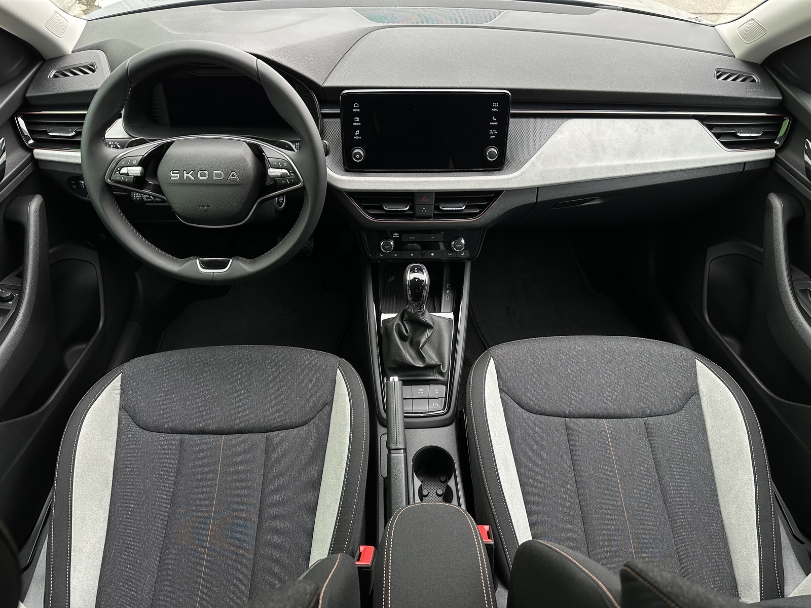 305/11121 AUTO Škoda Scala Premium 1.0TSi DSG 85kW/116PS, 7st. Automatická převodovka DSG, Tovární záruka Škoda Auto 5let/100.000km, Výbava vozu: Asistovaná jízda 1.5 PLUS - (Adaptivní tempomat, Adaptivní vedení v jízdním pruhu - Lane Assist+, Asistent hlídání mrtvého úhlu - Side Assist), Tažné zařízení sklopné - el. odjistitelné, Dvojitá podlaha v zavazadlovém prostoru, Vyhřívané čelní sklo, LED světlomety s LED denním svícením, Upozornění na únavu řidiče, LED zadní světla, Asistent rozjezdu do kopce, Přední mlhové světlomety, Tempomat, Front Assist – s varováním a brzděním při hrozící kolizi s vozidly, chodci a cyklisty, 6x Airbag, Deaktivace airbagu spolujezdce, Lane Assist – Asistent udržování v jízdním pruhu, 3x ISOFIX a Top Tether – 1x vpředu, 2x vzadu, Zadní parkovací senzory – PDC/Z, Rozpoznávání dopravních značek, Startování tlačítkem a centrální zamykání s dálkovým ovládáním, Světelný senzor, Loketní opěrka s Jumbo Boxem, Elektrické ovládání oken vpředu i vzadu, 2x USB-C, 12V zásuvka vpředu i v zavazadlovém prostoru, Sada na opravu pneumatik, Vyhřívaná přední sedadla, Hlavice řadicí páky a madlo ruční brzdy z kůže, Výškově nastavitelná sedadla řidiče a spolujezdce, Bederní opěrky na předních sedadlech, Nouzový systém tísňového volání SOS eCall+, Dekorativní obložení šedá Suedia, rámečky v měděném provedení, Čalounění sedadel – látka, Dvoubarevné LED ambientní osvětlení, TOP LED zadní světla s animovanými směrovkami, Corner funkce mlhových světlometů, Elektricky sklopná vnější zpětná zrcátka s automatickým stmíváním na straně řidiče, Vnitřní zpětné zrcátko s automatickým stmíváním, Dešťový senzor, Bezdrátové nabíjení mobilních telefonů s chlazením, Zadní loketní opěrka, Vyhřívaný multifunkční kožený volant pro DSG s pádly řazení pod volantem, Sunset – zatmavená zadní okna, Dvouzónová automatická klimatizace Climatronic, Infotainment – 8 reproduktorů, bezdrátový SmartLink, Kola z lehkých slitin ALU Škoda "STRATOS" 6,5J×17" stříbrná, Side Assist – Asistent hlídání mrtvého úhlu, Zadní parkovací kamera – KAMERA, Přední parkovací senzory – PDC, Alarm, Virtuální kokpit 10", Virtuální pedál – elektrické otevírání víka kufru pohybem nohy pod zavazadlovým prostorem, KESSY – bezklíčové zamykání a startování, Volba jízdního režimu, NOVÝ VŮZ ČR, Servisní kniha + dokumentace Škoda Auto, Možnost odpočtu DPH 21%, Skladem - ihned k odběru.