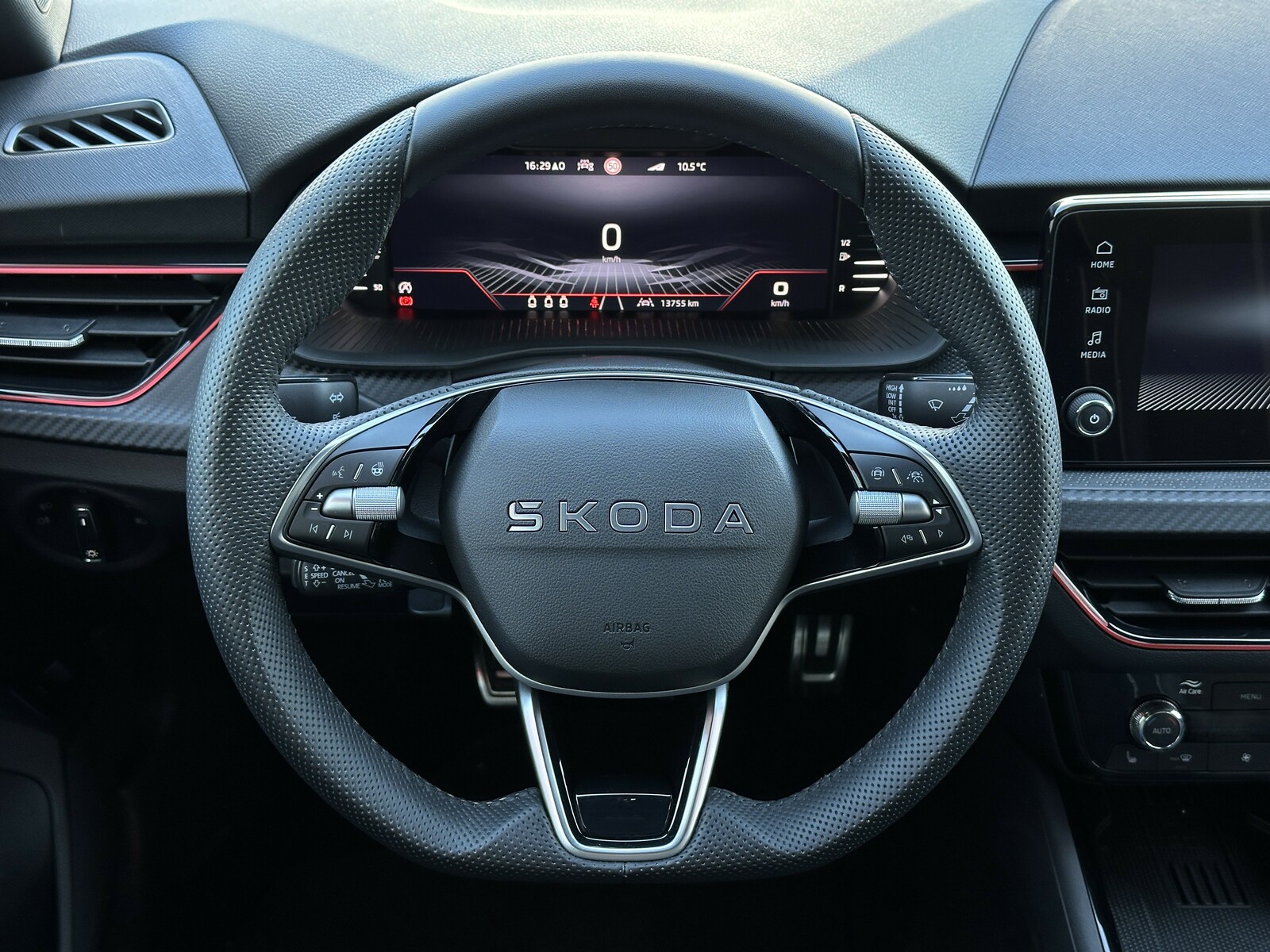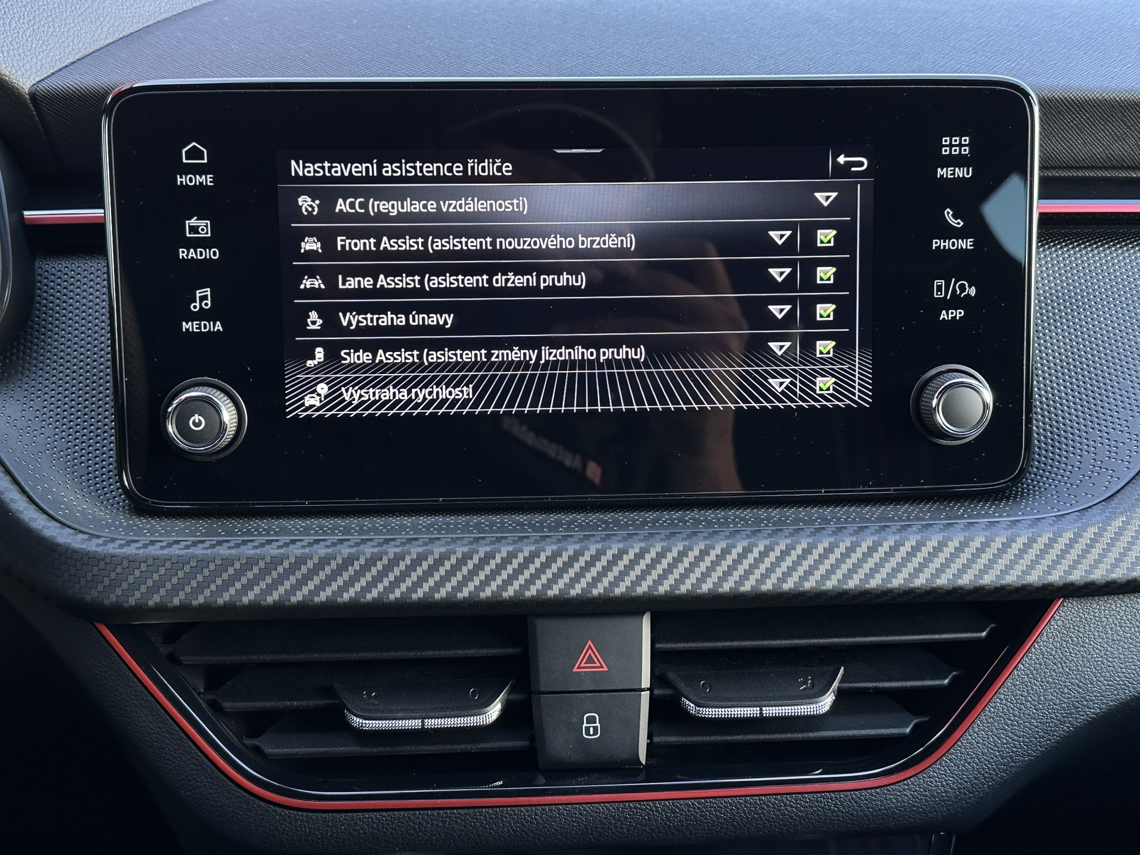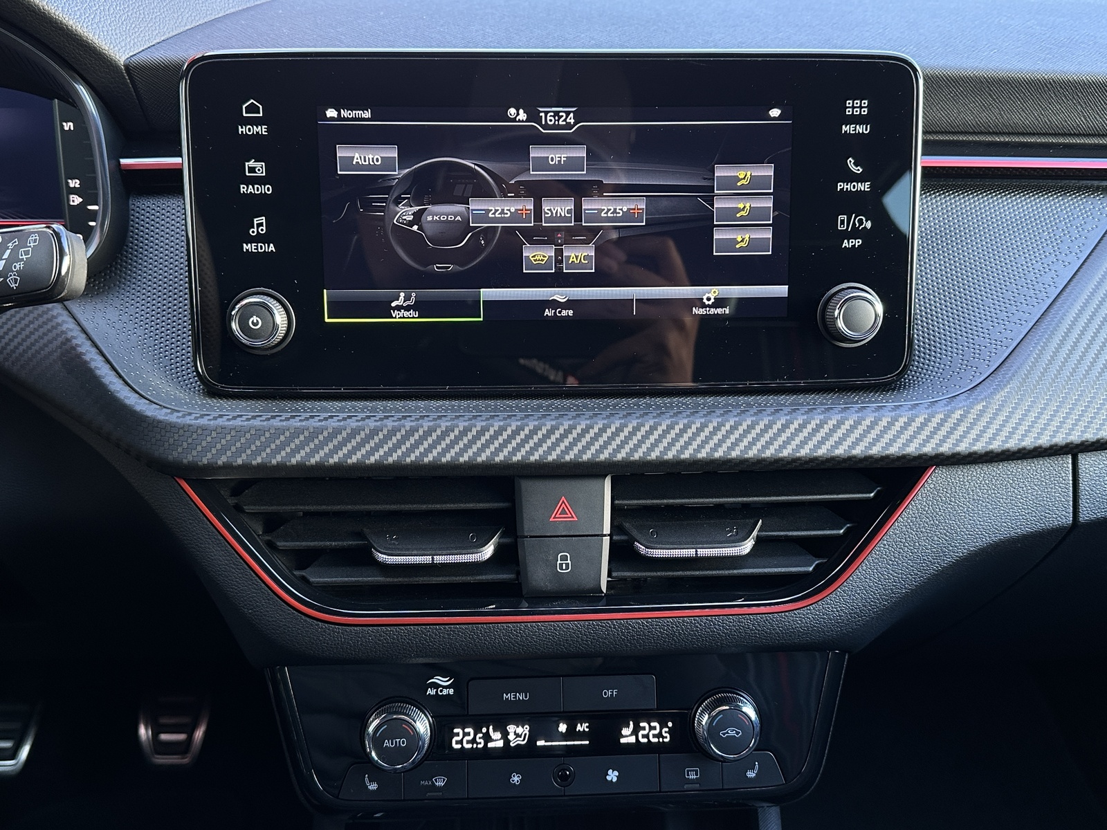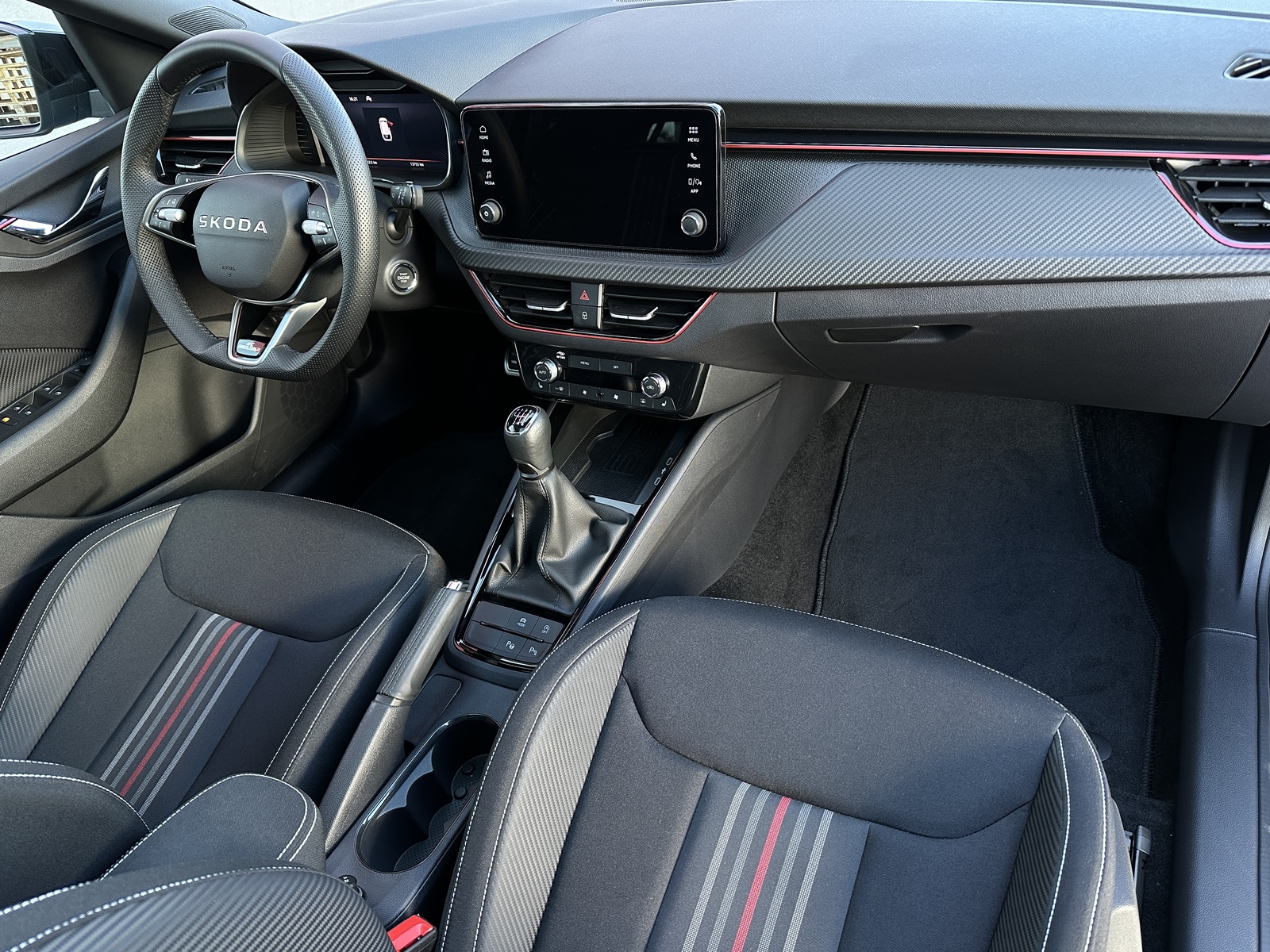 93/11208 Škoda Scala Monte Carlo 1.0TSi 85kW/116PS, 6st. Manuální převodovka, Tovární záruka Škoda Auto 5let nebo 100.000km, Výbava vozu: Paket City PREMIUM - (Zadní parkovací kamera, Parkovací senzory vpředu - PDC, KESSY s Alarmem - bezklíčové zamykání a startování včetně Alarmu, Volba jízdních režimů, Virtuální pedál - otevírání víka kufru pohybem nohy pod zavazadlovým prostorem, Virtual Cockpit, Automatické parkování - Park Assist), Asistovaná jízda 1.5 PLUS - (Adaptivní tempomat - ACC, Adaptivní vedení v jízdním pruhu - Lane Assist+, Hlídání mrtvého úhlu - Side Assist), Vyhřívané čelní sklo, Ocelové rezervní kolo, Kola z lehkých slitin ALU Škoda "URSA" 7Jx18" Černá/Leštěná, Matrix-LED přední světlomety, Panoramatická střecha, Interiér – sportovní Monte Carlo s černou stropnicí, Černě lakované doplňky karoserie, LED zadní světla s animovanými směrovkami, Vyhřívaný sportovní multifunkční kožený volant – pro DSG s pádly pod volantem, Sportovní kryty pedálů, Dekorativní prahové lišty, KESSY – bezklíčové odemykání a startování, Volba jízdních režimů, Zadní parkovací kamera, Parkovací senzory vpředu a vzadu – PDC, Mlhové světlomety, Elektricky sklopná vnější zrcátka s automatickým stmíváním, 2x USB-C vzadu, Dešťový senzor, Světelný senzor, Vnitřní zpětné zrcátko s automatickým stmíváním, Bezdrátové nabíjení pro Smartphone, Zadní loketní opěrka, Loketní opěrka s Jumbo Boxem vpředu, Dvouzónová automatická klimatizace Climatronic, Vyhřívaná přední sedadla, Bederní opěrky na předních sedadlech, Výškově nastavitelná sedadla řidiče a spolujezdce, Kožená hlavice řadicí páky a madlo ruční brzdy, Vyhřívané trysky ostřikovačů, Ukazatel hladiny kapaliny do ostřikovačů, Elektrické ovládání oken vpředu i vzadu, 12V zásuvka vpředu a vzadu, 2x USB-C, 8 reproduktorů, Infotainment Media 8" – Bluetooth, 4 reproduktory, DAB, Bezdrátový SmartLink, Front Assist – varování a brzdění při hrozící kolizi s vozidly, chodci a cyklisty, Rozpoznávání dopravních značek, Upozornění na únavu řidiče, Asistent rozjezdu do kopce, Virtual Cockpit , 6x airbag, 3x Isofix a Top Tether, Deaktivace airbagu spolujezdce, Nouzový volání SOS eCall+, Potah sedadel – látka, Sunset – zatmavená zadní okna, Servisní kniha + dokumentace Škoda Auto, Možnost odpočtu DPH 21%, Skladem - ihned k odběru.