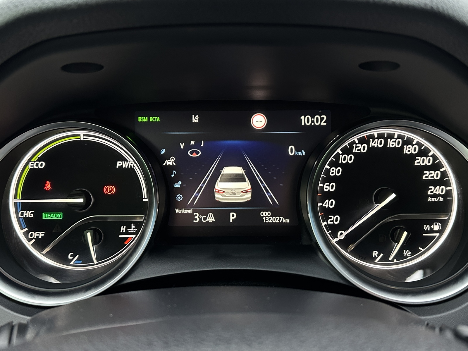 11/11100 Toyota Camry Executive 2.5 Hybrid AT 131kW/178PS, Automatická převodovka, Výbava vozu: Potah sedadel – kůže, El. nastavitelná přední sedadla, El. nastavitelný volant, Vyhřívaný multifunkční volant s pádly řazení, Navigační systém, Digitální palubní počítač, Bezdrátové dobíjení telefonu, Wi-Fi, Adaptivní tempomat – ACC, Asistent hlídání mrtvého úhlu, Asistent sledování provozu za vozidlem při vycouvávání, Čelní asistent varování před střetem s vozidly, chodci a cyklisty, Asistent vedení v jízdním pruhu, Rozpoznávání dopravních značek, Parkovací kamera, Parkovací senzory vpředu a vzadu – PDC, Bezklíčové zamykání a startování, Vyhřívání sedadel vpředu, Vyhřívané čelní sklo, Dvouzónová automatická klimatizace, Volba jízdních režimů, Bi-xenonové přední světlomety, Asistent dálkových světel, LED denní svícení, El. sklopná a nastavitelná vnější zpětná zrcátka – vyhřívaná, Zatmavená zadní okna, Hlasové ovládání, Bluetooth, DAB, USB, El. parkovací brzda s funkcí Auto-Hold, Nouzové volání SOS, 7x airbag, El. stabilizační systém – ESP, Isofix, Automatické svícení, El. stahování předních oken, Servisní kniha + dokumentace, Možnost odpočtu DPH 21%, Skladem - ihned k odběru.
